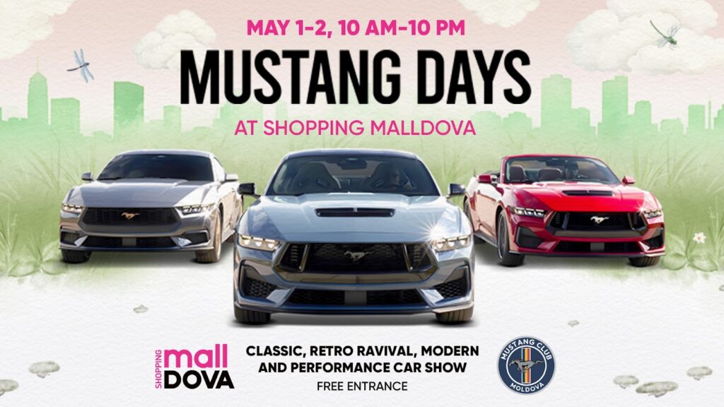 At the beginning of May, we invite you to Mustang Days — on May 1 and 2, from 10:00 AM to 10:00 PM. Over 40 impressive cars, from classic and retro models to modern high-performance versions, will create an atmosphere truly appreciated by all car enthusiasts.