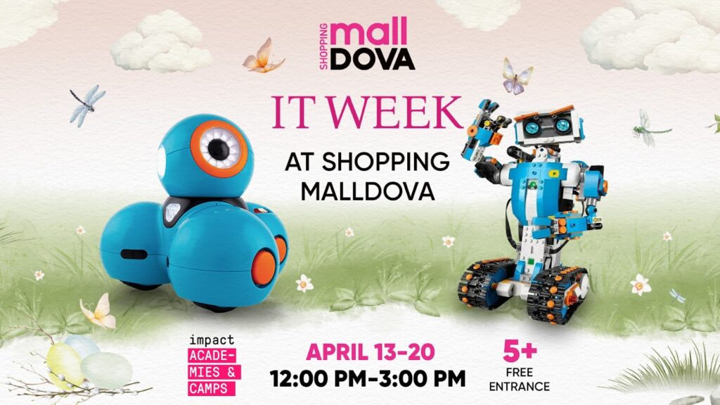 From April 13 to 20, between 12:00 PM and 3:00 PM, Shopping MallDova hosts IT Week — a series of free activities for children and teenagers. Participants will explore the world of technology through interactive workshops and engaging educational sessions, combining learning with fun.