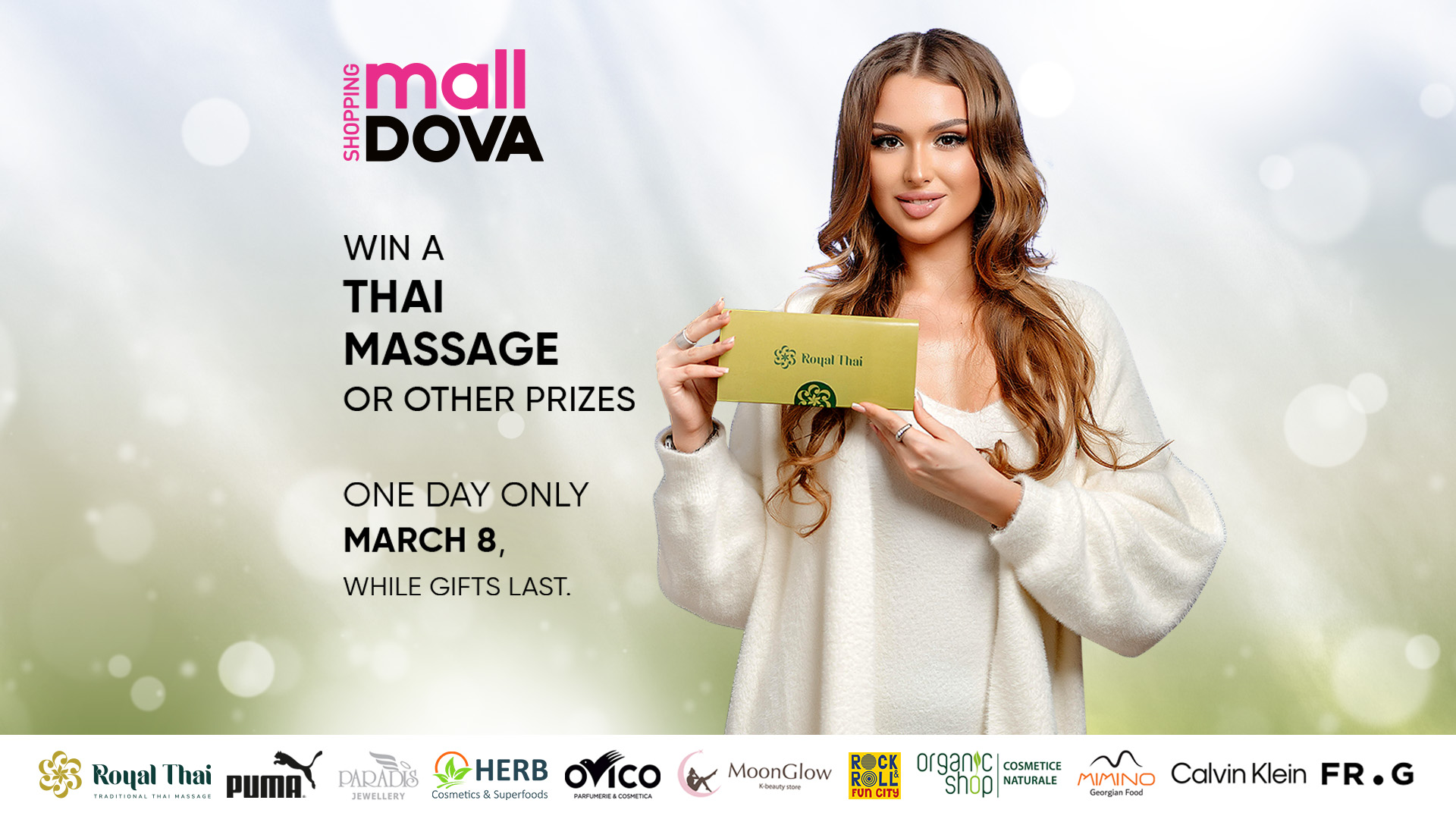 And the surprises don’t end there. Every visitor to Shopping MallDova on March 8 will have the chance to test her luck in a guaranteed-win lottery. The 10 luckiest participants will enjoy a Thai Massage session, while everyone else will receive guaranteed gifts from our partners.