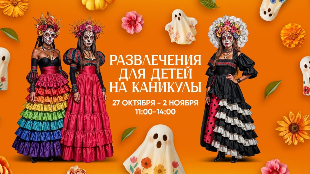 - Аниматоры в красочных костюмах — 11:00–14:00 (27–31 октября)